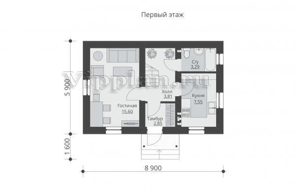 | Размеры дома: | 8.9м×5.9м |