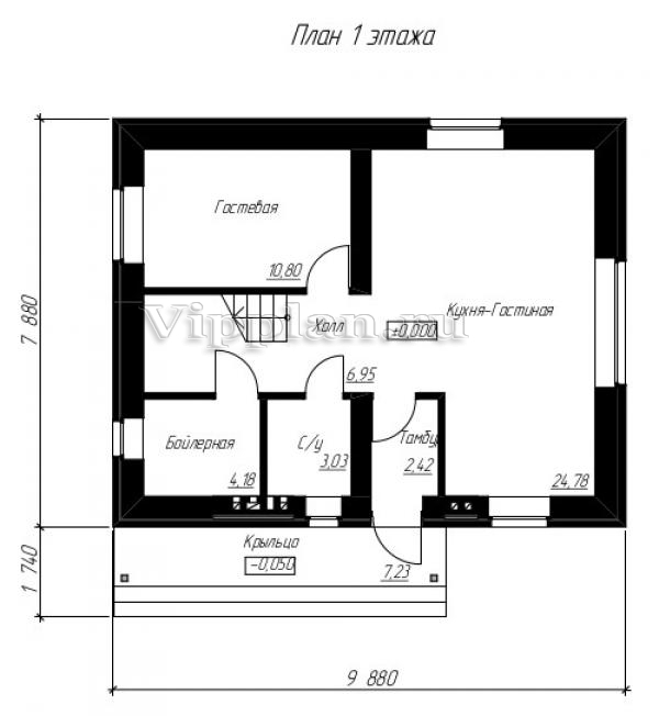 | Размеры дома: | 7.88м×9.88м |