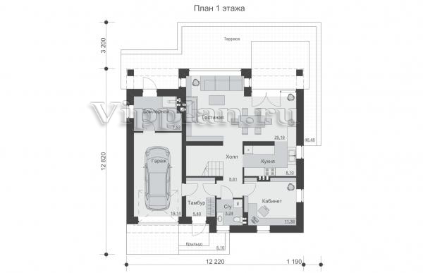 | Размеры дома: | 12.82м×12.22м |