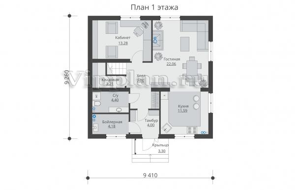 | Размеры дома: | 9.26м×9.41м |