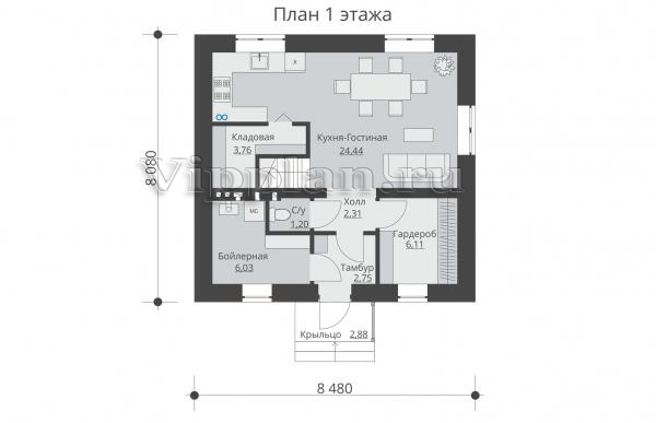 | Размеры дома: | 8.08м×8.48м |