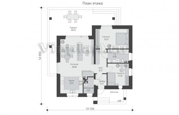 | Размеры дома: | 14.95м×13.15м |
