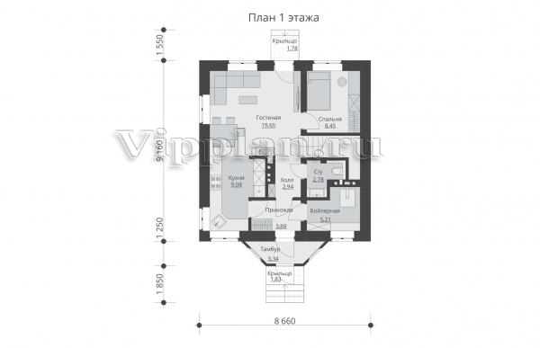 | Размеры дома: | 10.4м×8.66м |
