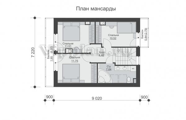 | Размеры дома: | 9.02м×8.12м |